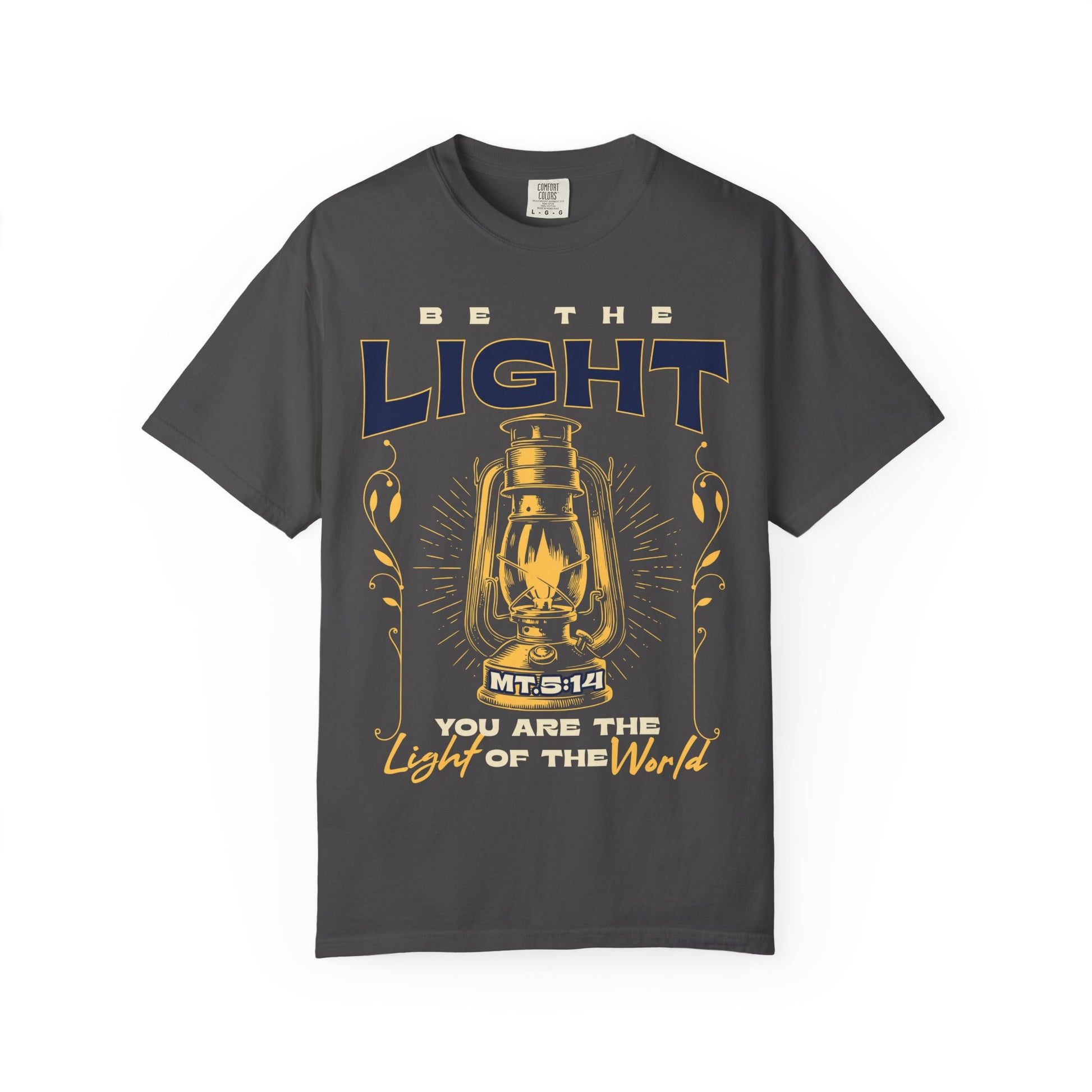 This garment-dyed tee carries a warm, lantern-lit message: Be the Light. Soft, lived-in color and a relaxed fit make it a go-to layer for evenings at church, outreach events, or casual days when you want your faith to speak without shouting. The vintage lantern illustration and hand-lettered scripture accent feel handmade and earnest—like a note passed between friends. It drapes comfortably, washes well, and keeps its subdued hue so the design reads like a quiet invitation rather than a bilgoard. Wear it to small group meetings, mission trips, or neighborhood walks when you want to share hope through presence and conversation.