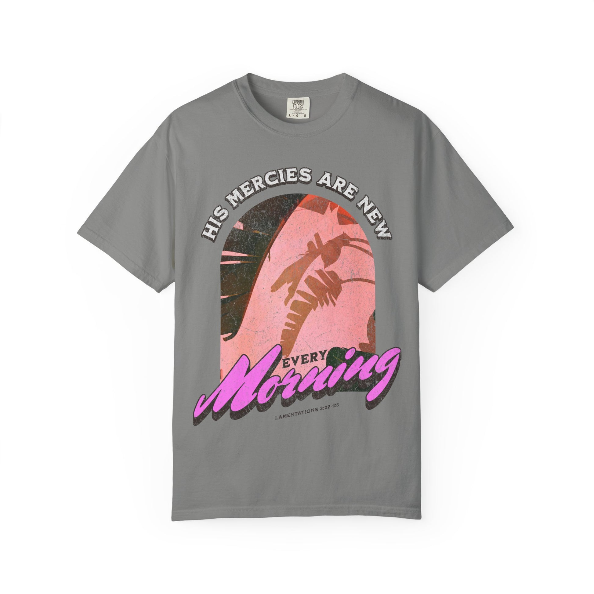 This relaxed, garment-dyed tee carries a warm, sunlit mood — soft-to-the-touch cotton with a vintage-inspired graphic that reads “His mercies are new every morning.” The faded, dusty-rose palette and retro script feel like slow dawn light and quiet gratitude. Wear it after early coffee runs, at small-group meetups, or on weekend walks when you want something comfortable that quietly shares hope. The loose fit and midweight fabric lay softly over layers, giving a lived-in look straight out of the box. It’s a shirt that settles into your routine and keeps the message gentle and personal.
