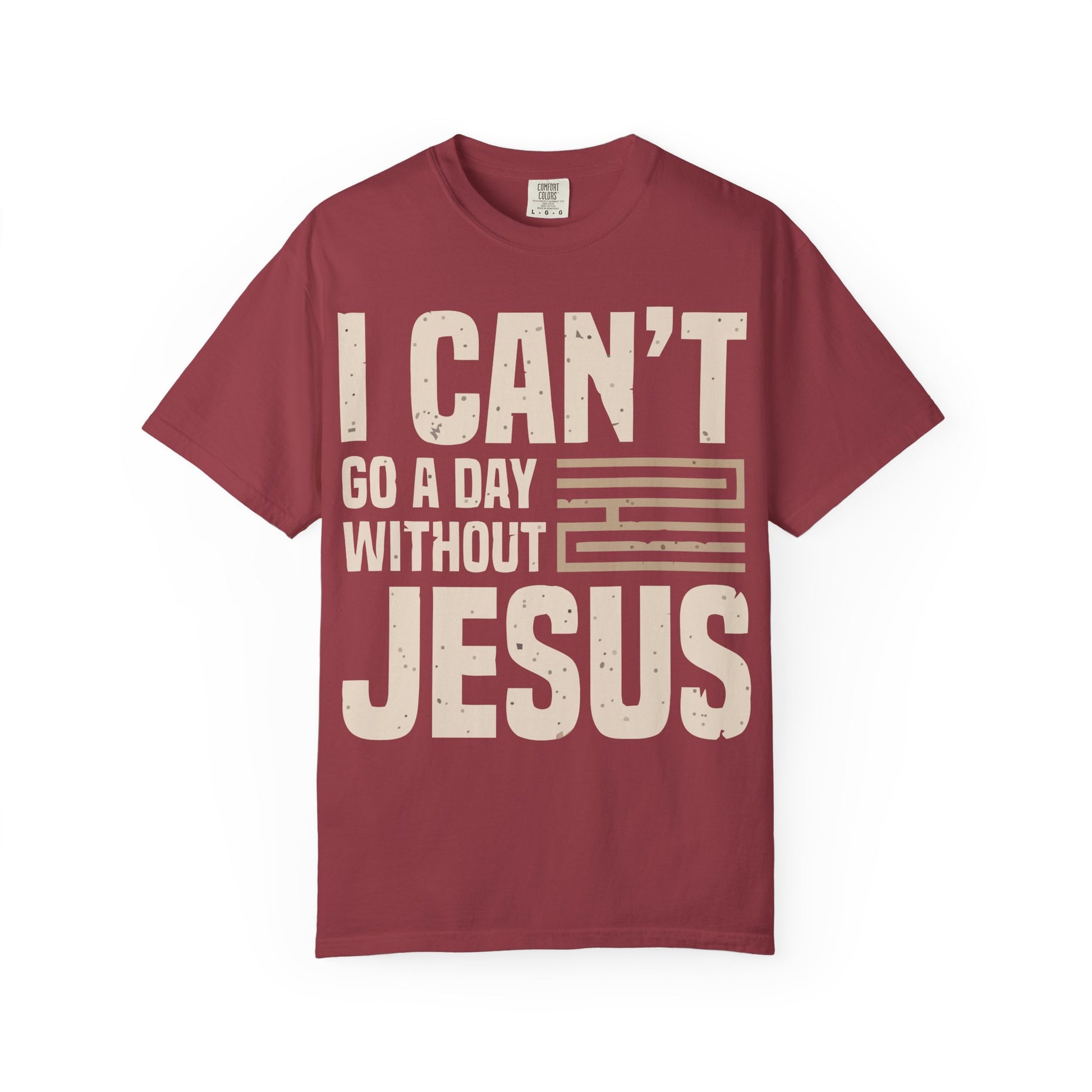 This relaxed, garment-dyed tee speaks simply and boldly: a soft, lived-in navy canvas stamped with the message “I CAN’T GO A DAY WITHOUT JESUS.” The slightly distressed, block-letter print feels earnest not flashy, the kind of shirt you reach for when you want to wear your faith with quiet confidence. The medium-weight cotton and tubular knit give it a broken-in drape that works for everyday routines—morning coffee, volunteer shifts, church small groups, or casual outings when you want your belief to be part of the conversation. It’s breathable, sturdy, and made to soften more with wear, becoming more personal over time.