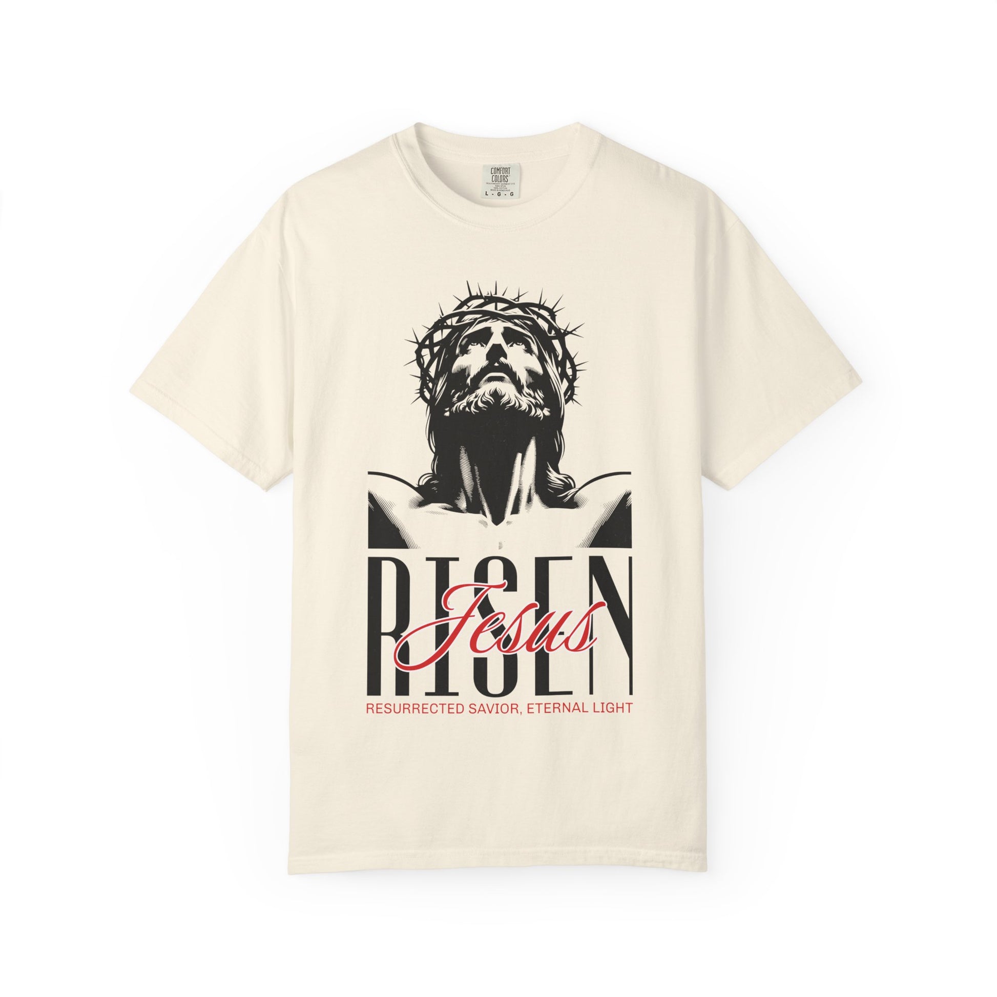 A soft, garment-dyed tee that carries quiet faith with everyday comfort. The relaxed fit and medium-weight 100% ring-spun cotton feel lived-in from the first wear, while the printed front artwork—an expressive rendering of Christ crowned with thorns and bold typographic accents—brings reverence into casual moments. Wear it to church gatherings, volunteer days, or slow Sunday mornings; it layers easily under jackets or stands alone as a thoughtful statement. The muted, vintage-like dye and sewn-in label keep the look authentic and subdued, letting the design speak without shouting.