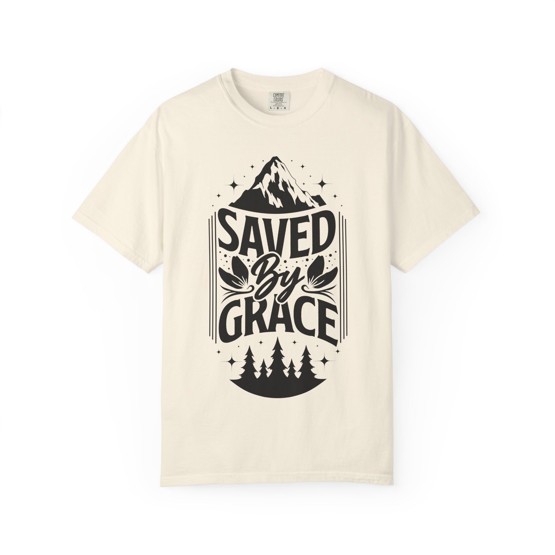 A majestic declaration of salvation, this design lifts the eye to snow-capped peaks and starlit skies, echoing the grandeur of God’s mercy. “Saved By Grace” stands bold and unwavering, framed by nature’s witness—trees, mountains, and celestial light. It’s a visual hymn to the unearned gift of redemption, reminding every soul that grace reaches higher than any summit.